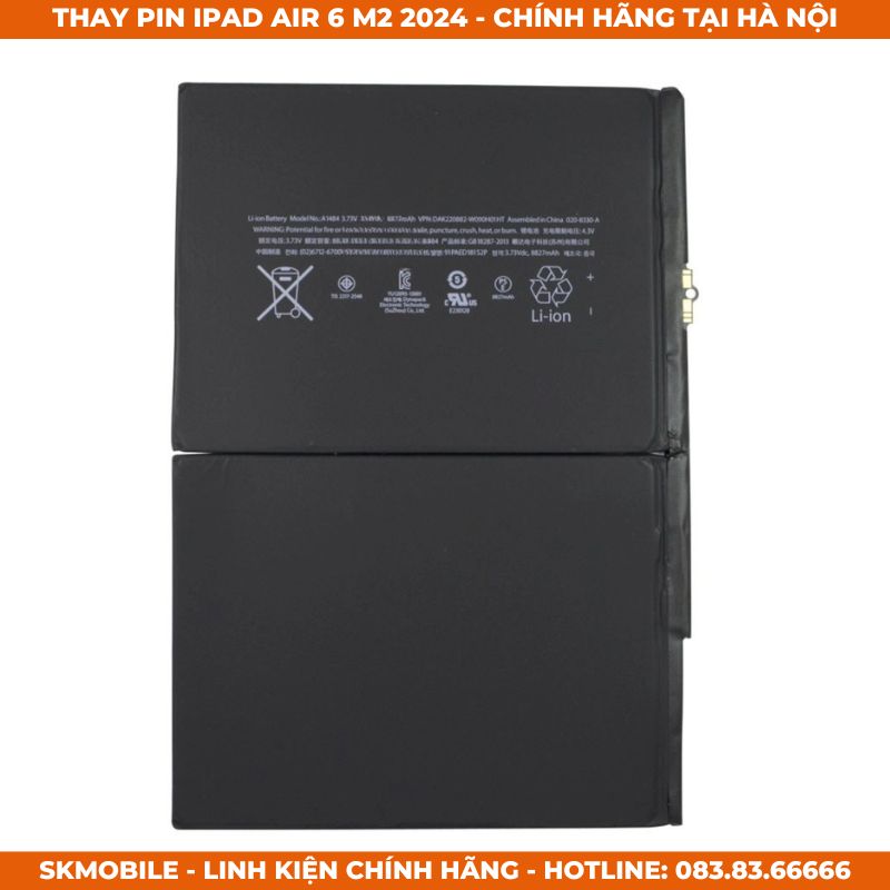 Dung lượng pin của iPad Air 6 (đặc biệt bản 13 inch) cực lớn để gánh con chip M2 và màn hình lớn. Viên pin to, công nghệ cell pin mới nhất nên giá thành linh kiện chính hãng cao hơn các đời cũ.